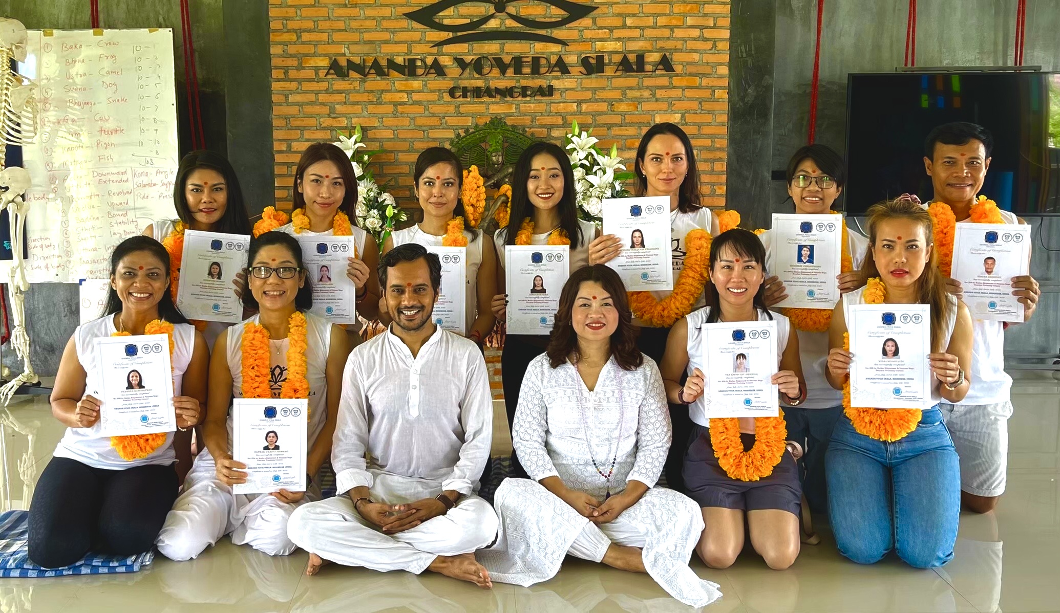 Ananda Yoveda Shala is a Registered Yoga School with Yoga Alliance (RYS200, 300, 500, RPYS & RCYS) and the Ministry of Education (Thailand), located in Phayamengrai, Chiangrai, Thailand. The school’s curriculum is accredited by the Ministry of Education of Thailand and Yoga Alliance. Our courses will give you all the required skills and confidence as well as an internationally recognized certification to teach worldwide (RYT200 Certification). The courses are taught and guided by highly experienced, dedicated and motivated teacher team.